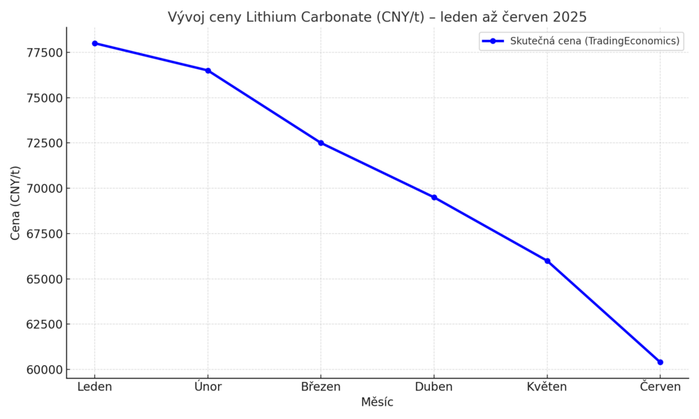 Shrnutí: Proč cena lithium-carbonátu v H1 2025 spadla o 32 %?