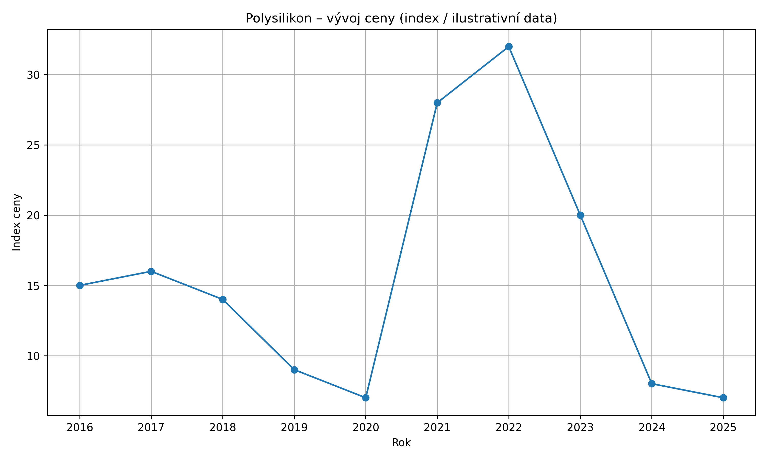 Cena hlavního prekursoru pro solární články šla v posledních letech výrazně dolu a i díky tomu ceny solárních panelů několikrát narazily na historická minima. Na změnách ceny křemíku je navíc dobře vidět, jak se vyvíjel celosvětový fotovoltaický trh v posledních letech. Obrovský nárůst ceny v letech 2020-2022 koreluje se solárním boomem v EU a nedostatkem zboží. Následovalo ovšem navýšení produkce a markantní přeplnění evropských skladů, které logicky vyústilo v ochlazení trhu trvajícího až do dnešních dní. U křemíku se sleduje jak cena surového materiálu, tak i ceny destiček (waffers) a z nich vyrobených fotovoltaických článků.