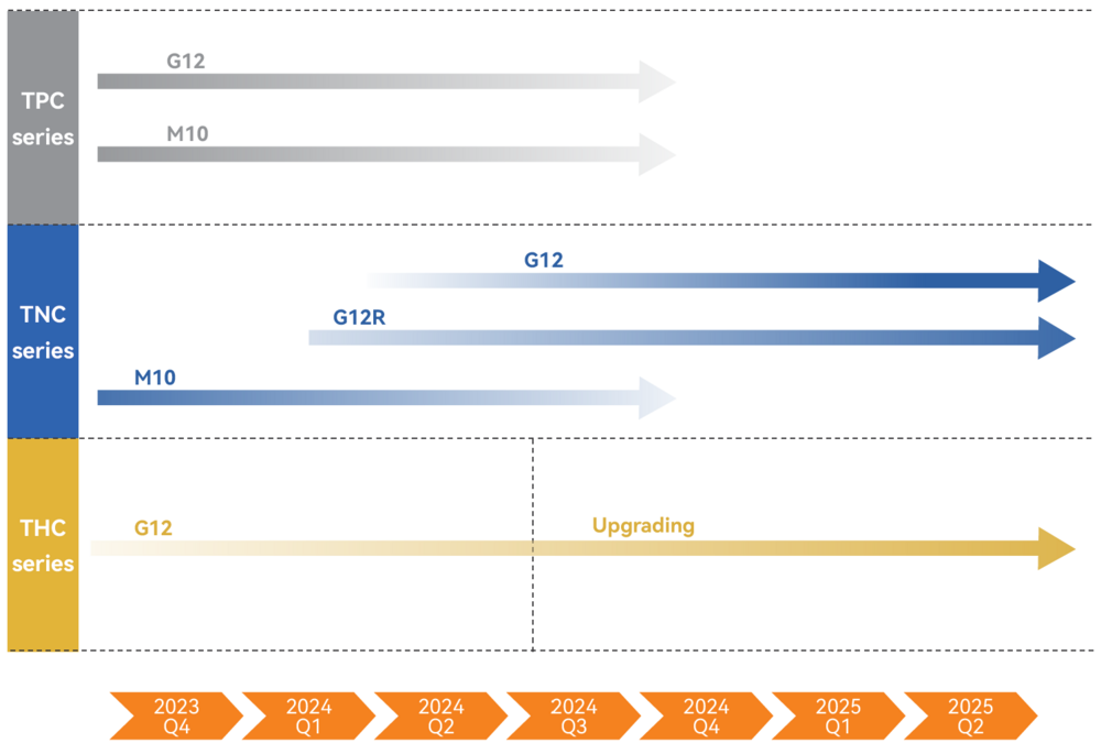 Ale pojďme se podívat také na to, jak se zmíněné projevuje do technologie. Následující obrázek je výrobní roadmapa TW Solar na další rok: