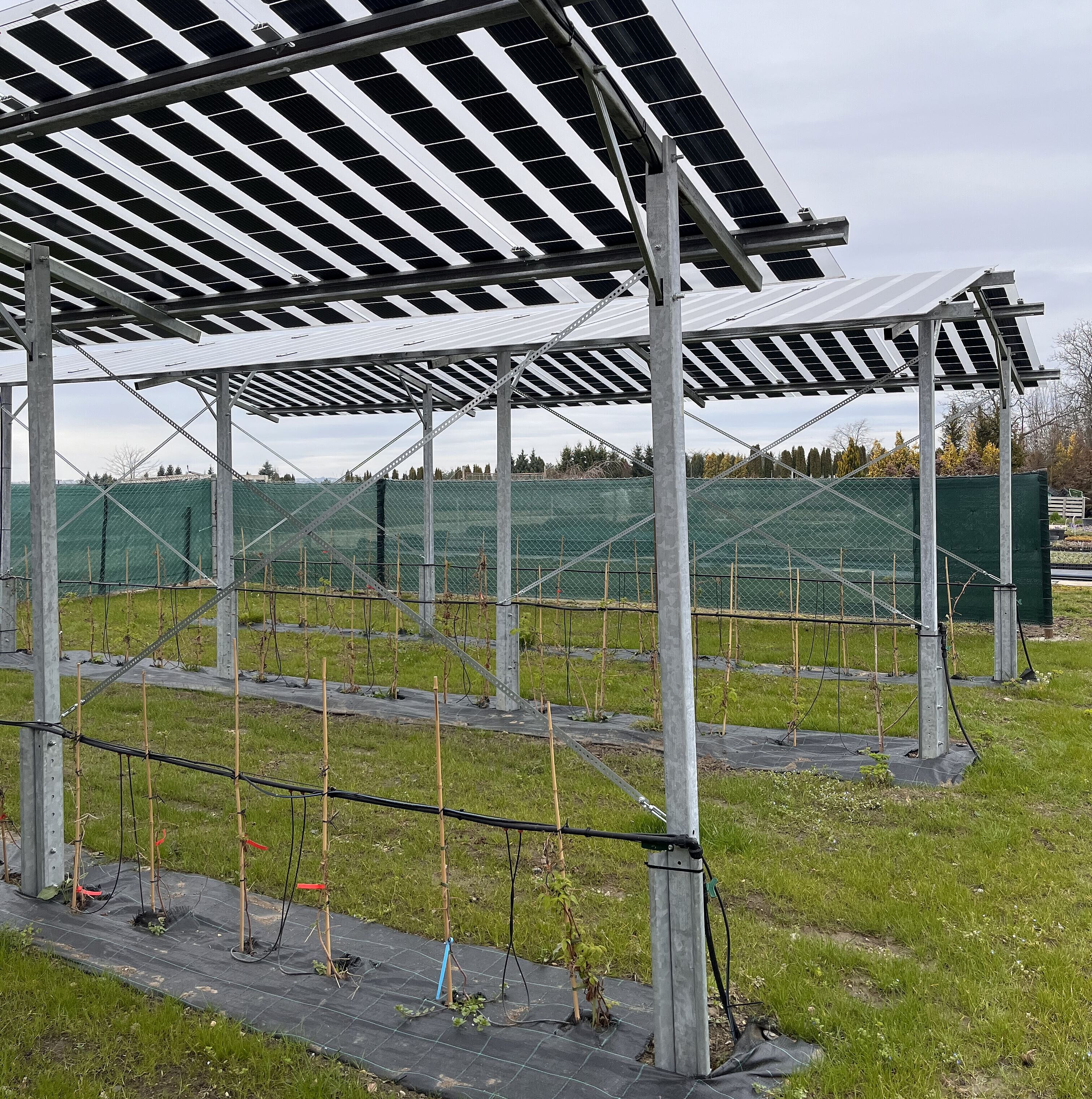 Velmi perspektivní jsou konstrukce nad plodinami, typicky ve vinicích, sadech nebo při pěstování zeleniny. Panely jsou instalovány ve větší výšce, aby umožňovaly průjezd techniky a běžné zemědělské práce. U vinné révy či ovocných stromů navíc částečné zastínění pomáhá omezovat stres z vysokých teplot a snižovat odpar vody. V těchto případech agrovoltaika funguje nejen jako zdroj energie, ale i jako ochranný prvek.